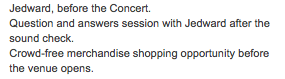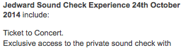 Details of the Sound Check Experience are as follows: